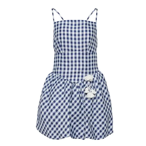 $256 Self-Portrait 海军蓝格纹吊带裙