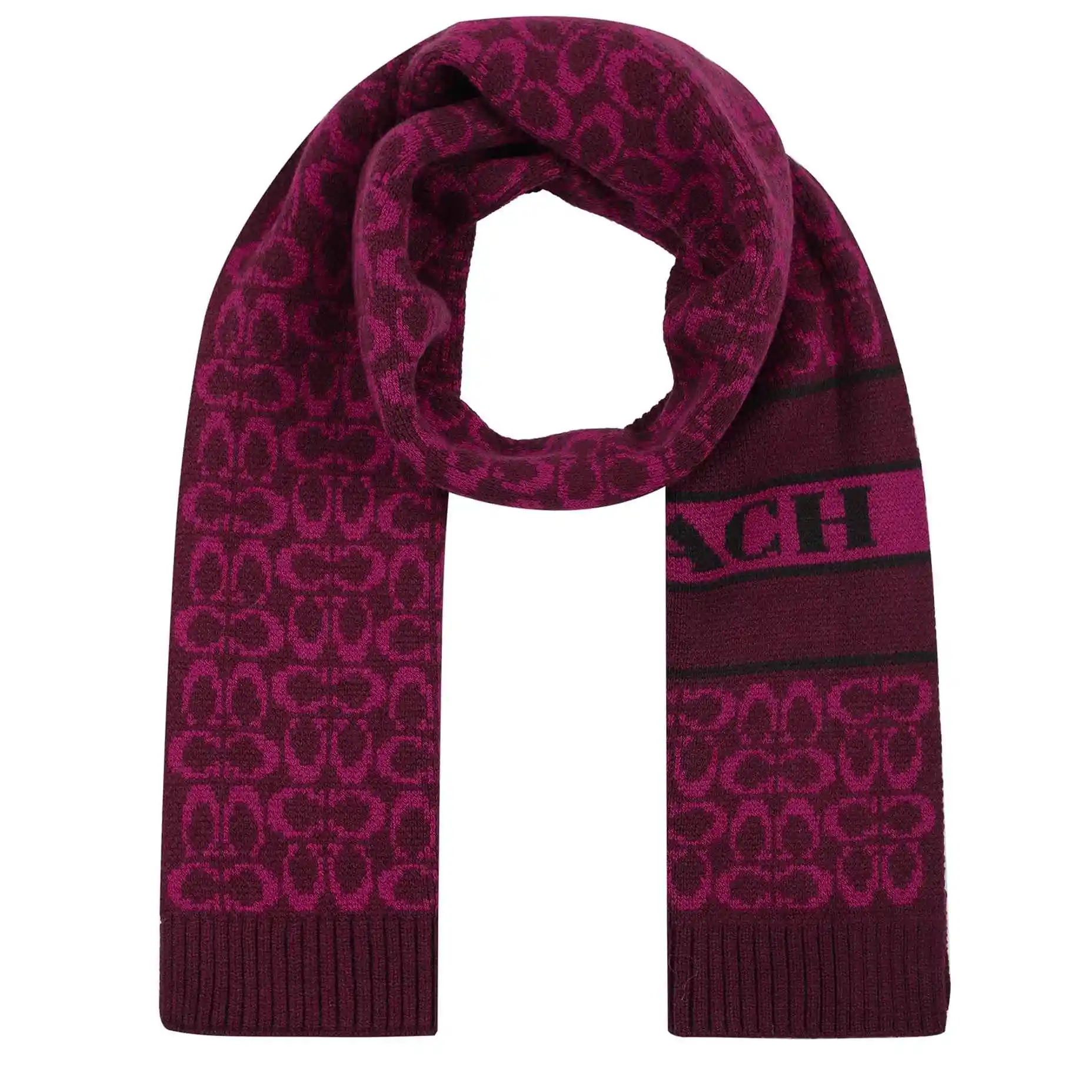 Coach 蔻驰女式标志性 C 标志针织围巾, 深浆果