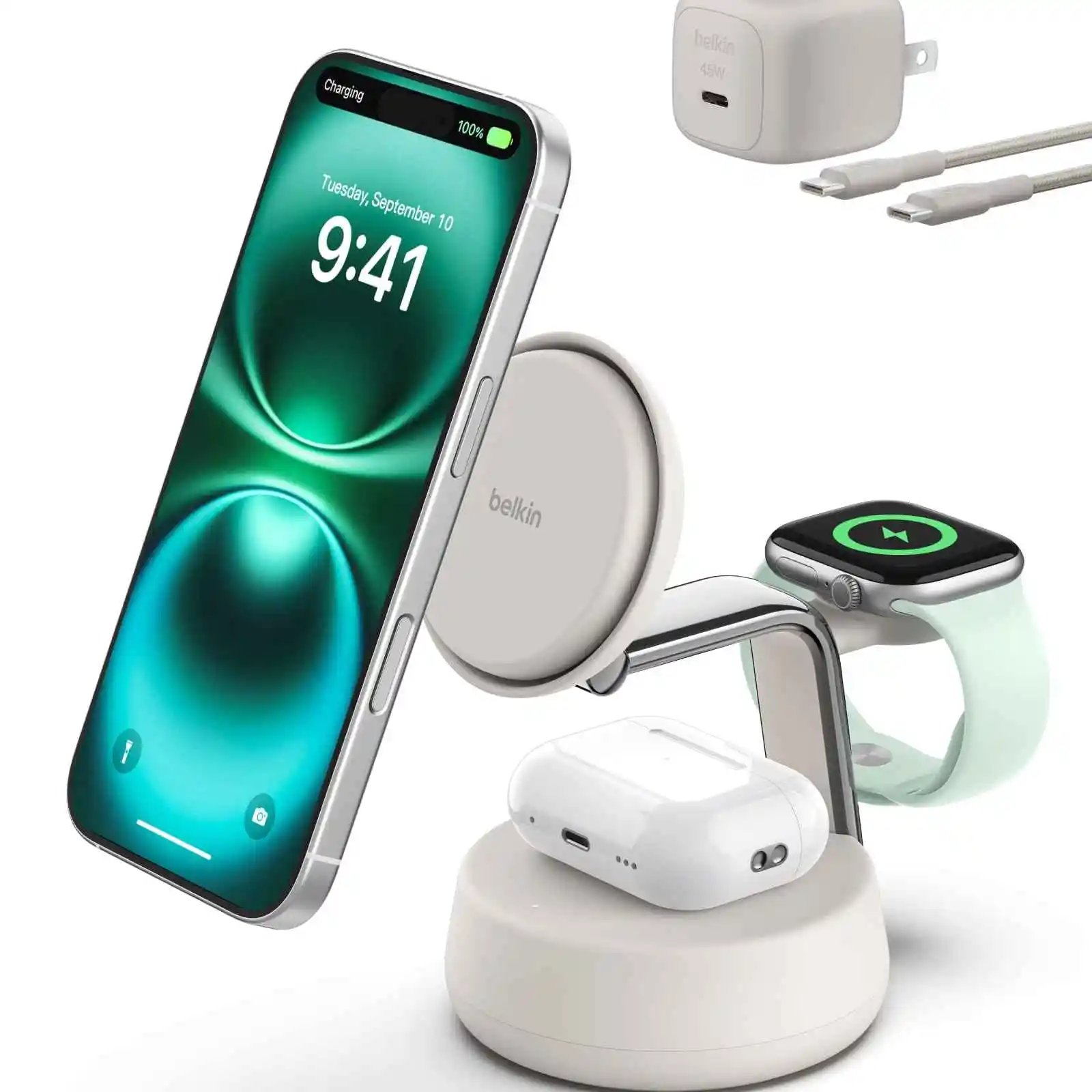 Belkin MagSafe 充电器兼容,3 合 1 充电站,Qi2.2 25W 带冷却风扇