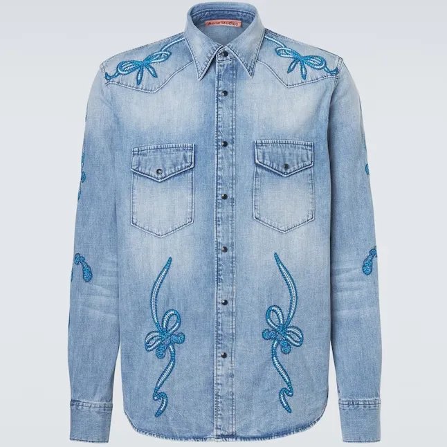 $545 ACNE STUDIOS 蝴蝶结印花牛仔衬衫