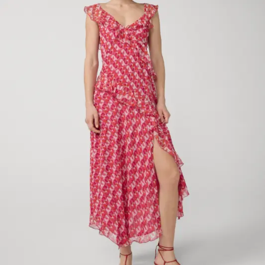 $598 DVF Sloane 荷叶边印花连衣裙