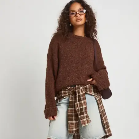 $17.5 Boohoo 粗花呢翻边袖口针织套头衫