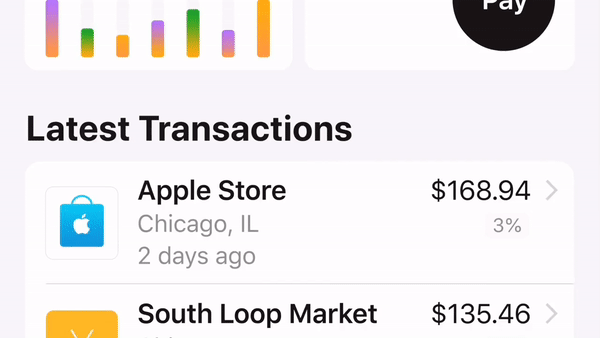 返现当日到账:Apple Card的返现是日返,你当天花的钱立刻就能得到回馈,并且没有上限