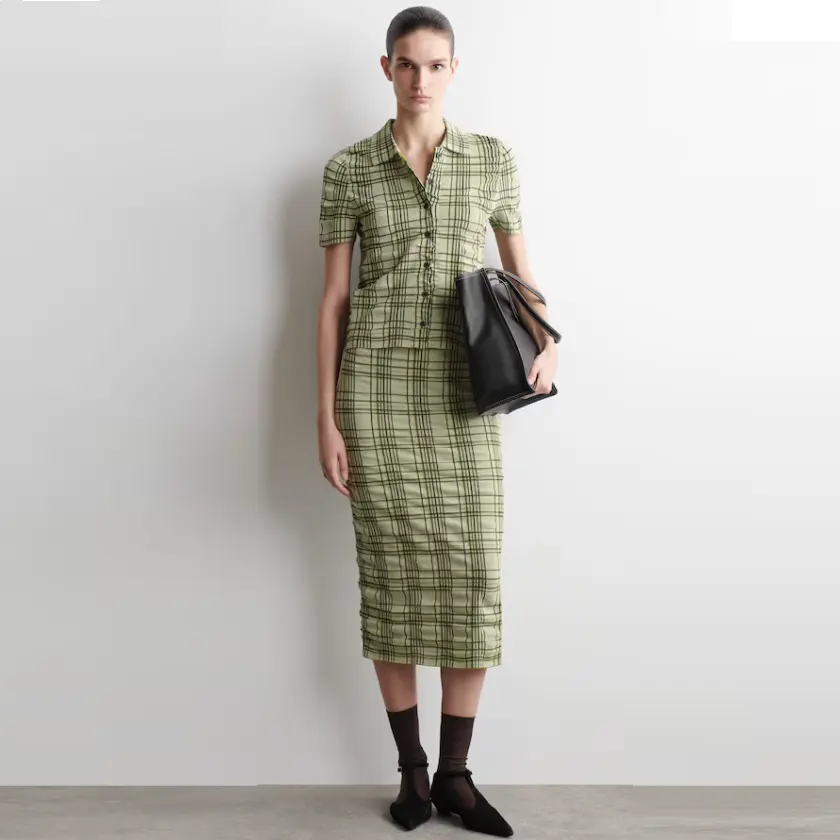 $126.65 COS 格纹棉质提花中长半裙