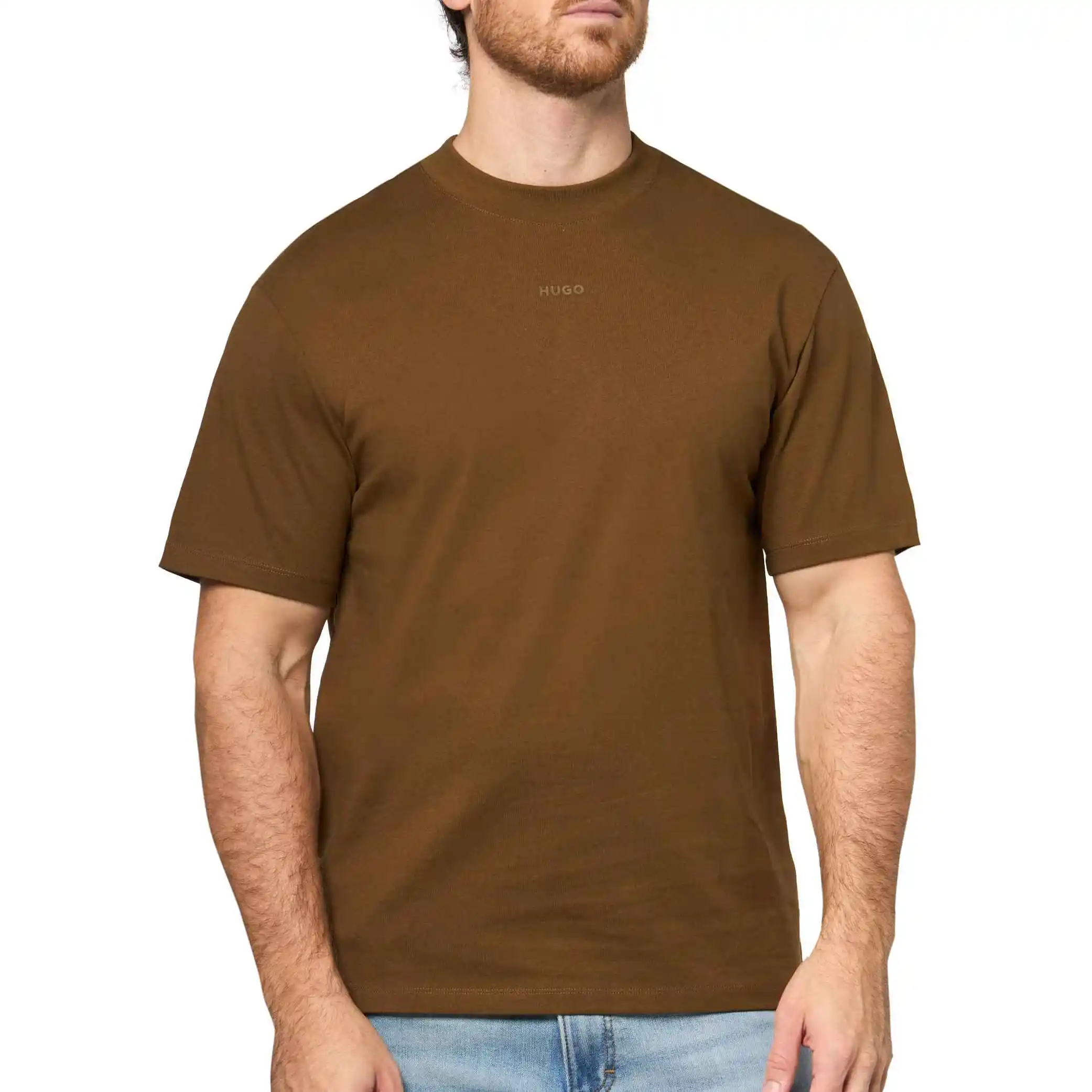 HUGO 男式 S 码中心标志针织短袖 T 恤, 深棕褐色