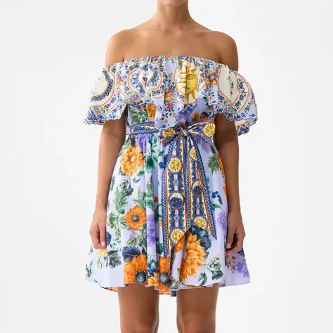 $521.25 Camilla 荷叶边一字肩连衣裙 短款