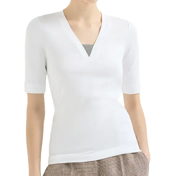 $472.5 Brunello Cucinelli V领装饰T恤 白色