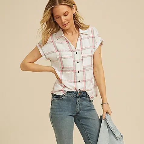 $25.89 maurices 格纹蝙蝠袖衬衫