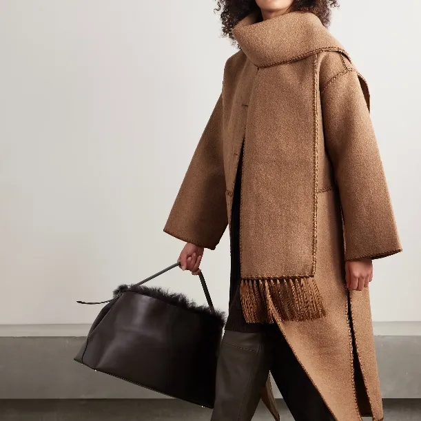 $618 TOTEME 垂褶流苏羊毛混纺圈圈呢大衣