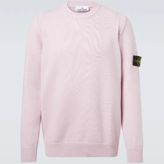 $304 STONE ISLAND 石头岛徽标粉色圆领毛衣